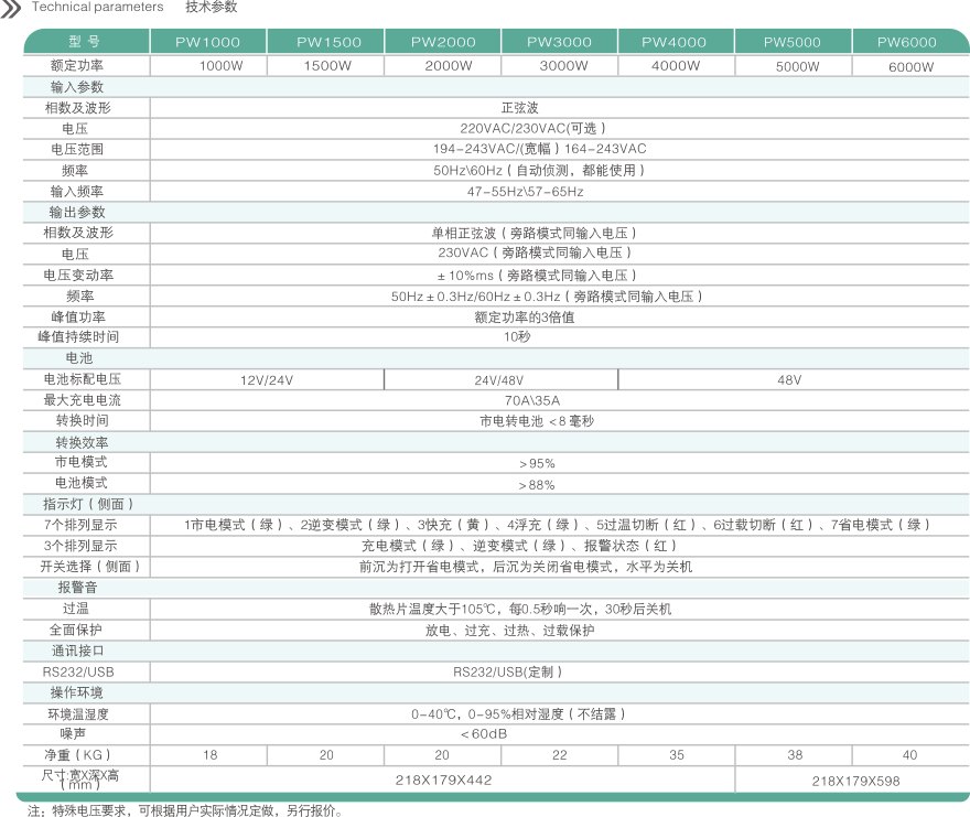 PW系列大功率智能逆变器是我公司专为办公、家庭和特殊环境,提供高质量电力需求而设计的,它是具有适应能力强,能接感性负载(如家用冰箱、彩电、空调、电钻等),此款逆变器具超强的短路保护,稳定性高,纯正弦波输出的新一代智慧型UPS逆变器。专为办公和公共场所设备、家用系统、网络传输设备、制造、控制系统、太阳能系统、油田、钻井野外作业提供电能保障。